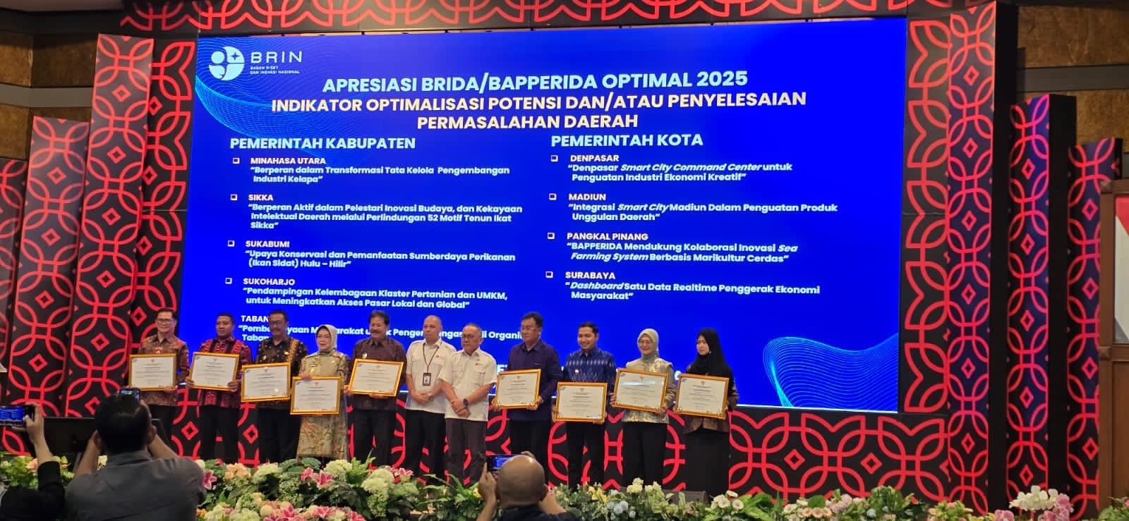 Surabaya — Pemerintah Kota (Pemkot) Surabaya kembali menorehkan prestasi gemilang di kancah nasional. Kota Pahlawan berhasil meraih Penghargaan BRIDA/BAPPERIDA Optimal 2025 dari Badan Riset dan Inovasi Nasional (BRIN) Republik Indonesia, dalam acara Apresiasi BRIDA/BAPPERIDA Optimal 2025, yang diselenggarakan di Jakarta, Senin (27/10/2025).