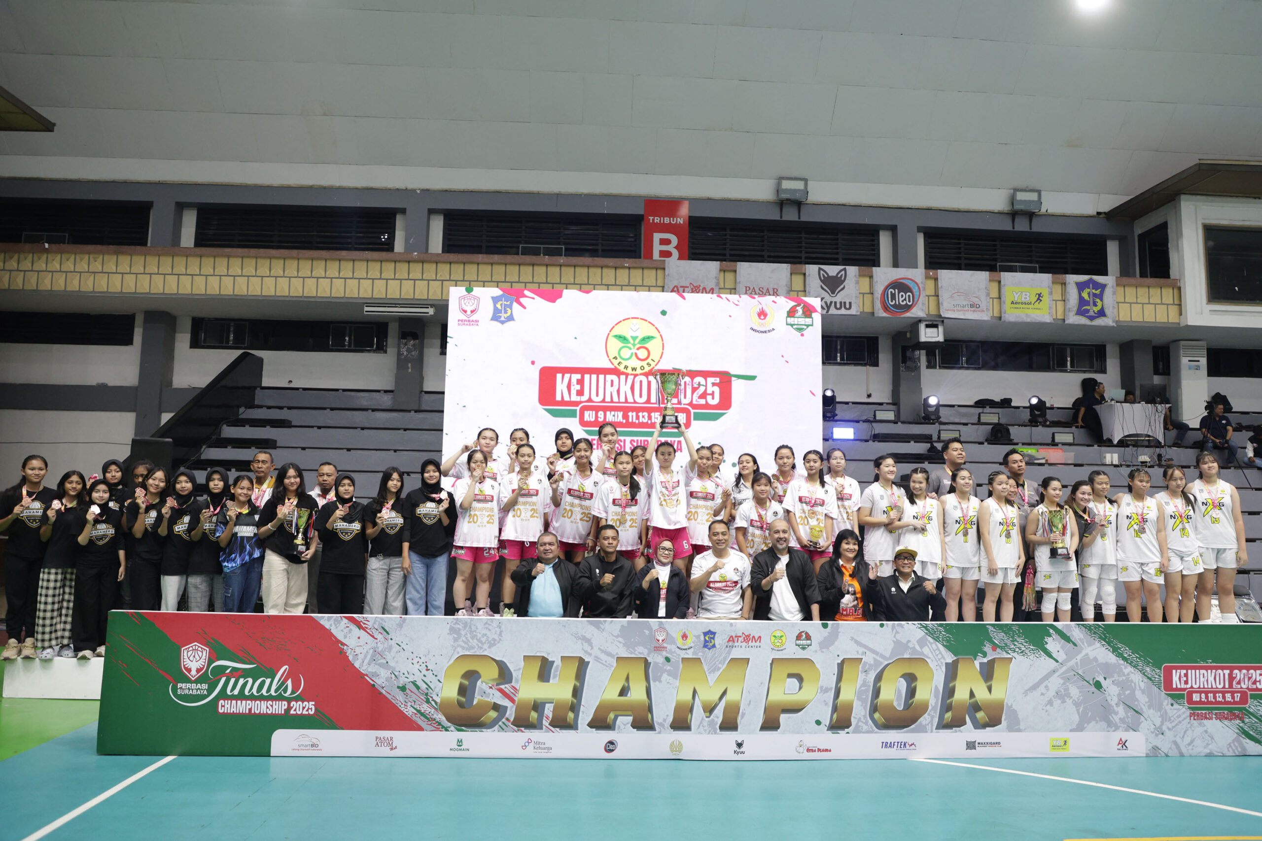 Surabaya-Pemerintah Kota (Pemkot) melalui Persatuan Wanita Olahraga Seluruh Indonesia (Perwosi) sukses menggelar Kejuaraan Kota (Kejurkot) 2025 Basket pada Minggu (7/12/2025) malam. Kejurkot Basket putri yang diselenggarakan bersama Persatuan Bola Basket Seluruh Indonesia (Perbasi) Kota Surabaya itu ditutup meriah.